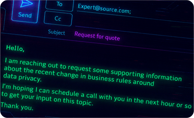 Who has time to chase down experts? Submit one request and get notified when our subject matter experts have submitted quotes and comments for you to choose from.